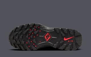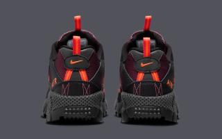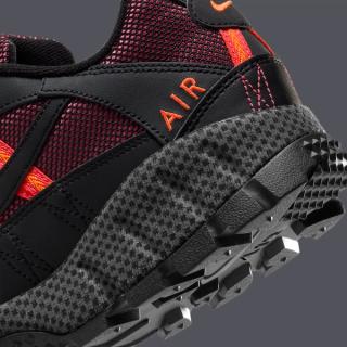 The mid-foot straps, a defining feature of the Air Humara, take center stage with vibrant orange accents that exude energy and dynamism. Crimson-red trim frames the orange detailing, creating a harmonious balance between the electrifying shades.