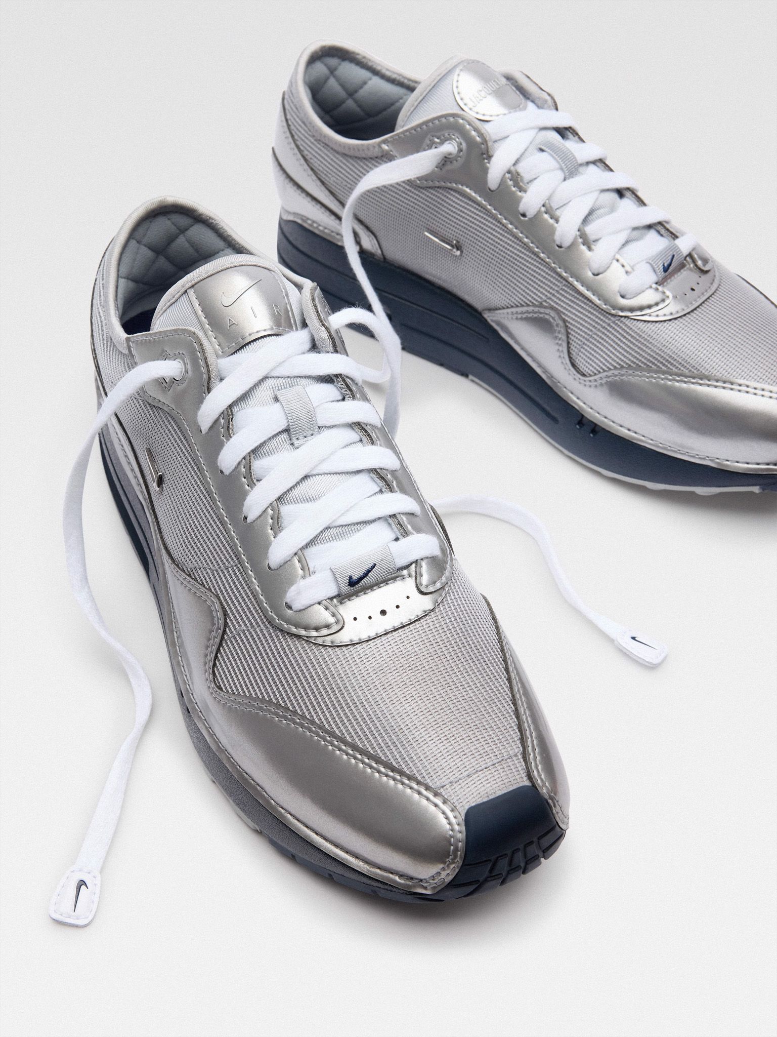 Each sneaker in the pack is designed with meticulous attention to detail, a hallmark of JACQUEMUS's approach to fashion. The sneakers come adorned with a luxurious JACQUEMUS hang tag, thick laces that enhance their visual texture, and a distinctive small metallic Swoosh that sweeps elegantly across the body, adding a subtle yet impactful brand signature.