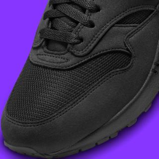 Much like its Air Force 1 counterpart, this Air Max 1 offers a study in simplicity, making no room for extraneous details or avant-garde design elements. The shoe features a breathable mesh upper and a set of tactile overlays that further the texture. Complementing the all-black construction, the white Swoosh overlays emerge as a sharp contrast, adding a touch of sophistication to the otherwise monochrome palette. White branding also appears on both the tongue and the heel, standing out against the murdered-out sole unit.