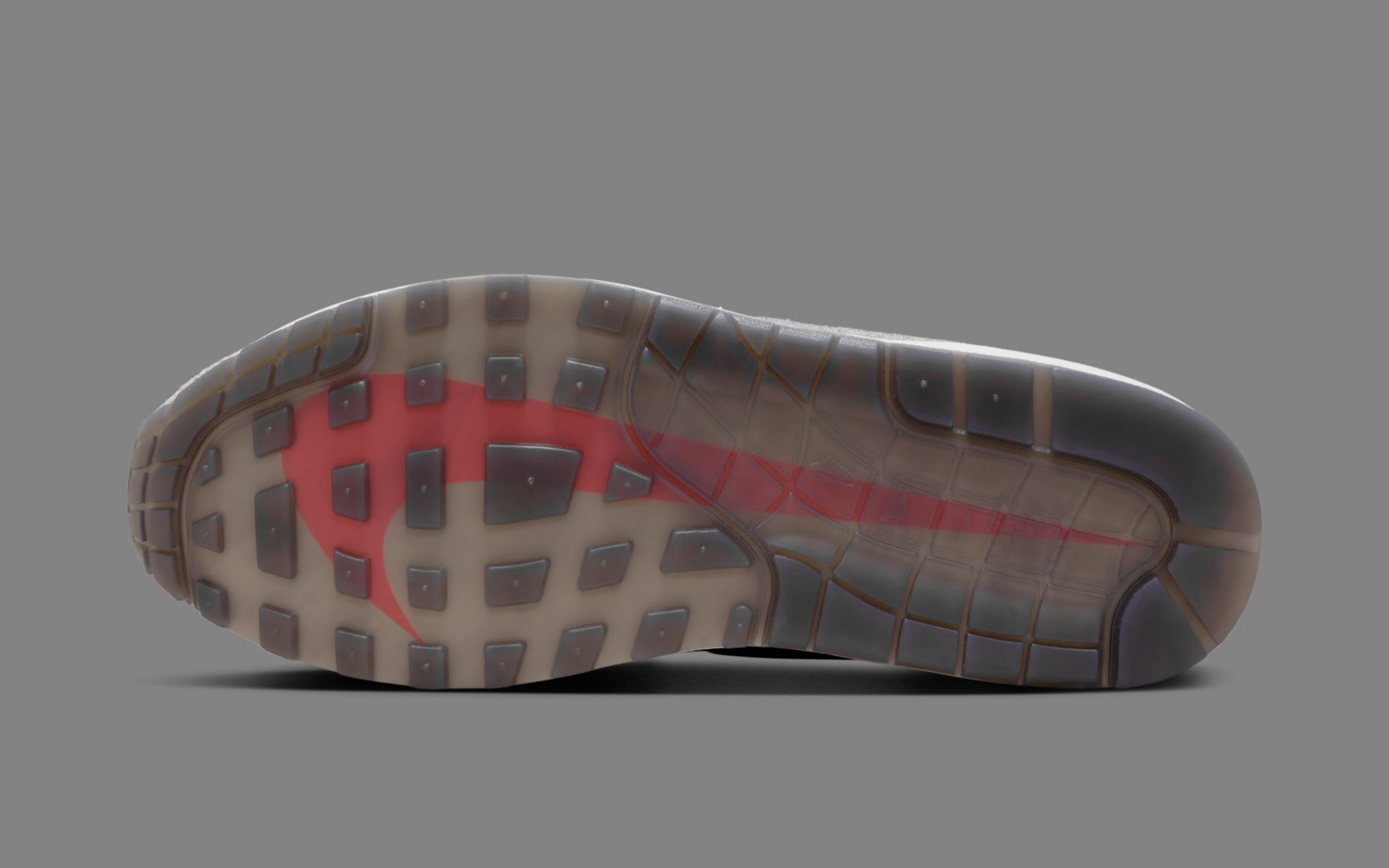 One of the standout features of this model is the prominent smoke grey Nike Swoosh, which elegantly stands out against the darker tones of the upper. Additionally, crimson red details provide a vibrant pop of color that draws the eye and accentuates the sneaker’s sleek lines. These red accents not only elevate the design but also add a dynamic element that enhances the overall visual impact of the shoe.