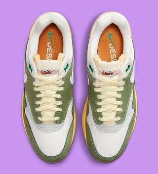 Inspired by the Nike Sting, a running shoe from the late 70’s, the rendition sports a vintage aesthetic with old school white mesh, tumbled green leather overlays, and burnt orange heels all playing pivotal roles. Given the origin of the inspiration, vintage accents are plentiful, from exposed foamr tongues to cream laces and tinted midsoles; a classic gum rubber outsole sits underfoot to harness the early days, too. The pair is then completed by a special gold Air Max 1 hang tage, retro tongue branding, and special graphic insoles.