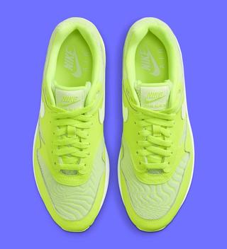 Similar to the Dunk Low, this Air Max 1 comes entirely draped in a singular color. While the Dunk Low sports a cool University Blue, the Air Max 1 is decked out in a strikingly bright volt, its electrifying tennis ball hue making a bold statement for the summer months.