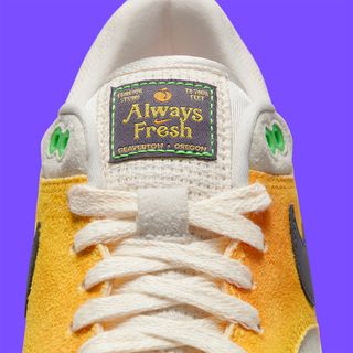 Going all-in on the peach theme, Nike has prepared a release clad in soft, color-shifting suede that replicates the natural color and texture of Georgia’s famous fruit — it even comes with a Nike-branded produce sticker on the lateral ankle. All of this comes together on hemp-like uppers reminiscent of produce bags, with special-edition tongue tags and insoles furthering the overarching theme. Mini peach motifs are then embroidered onto the forefoot. White midsoles rest beneath, while a semi-translucent rubber outsole underfoot reads the pair’s playful title underfoot.
