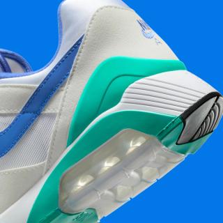 The 'Bluebird' colorway combines a mix of off-white suede and white nylon on the base, creating a clean backdrop for the vibrant accents that define the design. Periwinkle blue adds a pop of color to the Swoosh, lining, tongue piping, and toe portion of the outsole, while teal brings balance to the heel counter, Air unit border, and tongue branding. This retro revival stays true to its roots, delivering the same bold yet timeless aesthetic that made the original so beloved.