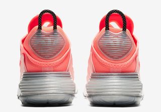 Next up for the new silhouette is this ladies-exclusive “Lava Glow” Air Max 2090 which pairs soft pinks and orange to create a cocktail-colored upper. Solid pink synthetics ride the vintage-inspired mudguards, with similar-yet-semi-translucent shades sitting atop the lacestay and toe overlays. Underfoot you’ll find a classic white midsole, silver heel counter, and grey rubber outsole, and the pair is capped off the bold strokes of black along the lateral Swooshes, heel pulls and insoles.