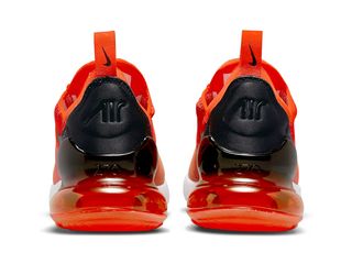Just one of a slew of OJ-themed releases from the Swoosh, each bringing an entirely new take on an all-orange arrangement. Here, the Air Max 270 prefers a gradient finish that works from pastel peach at the toe to Total Orange in the back. LAces, tongues, pulls, liners and Air units favor the latter, before bold black wrap the back heel, forefoot branding, and outsole to complete the design.