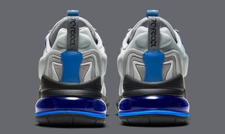 Instead of all-out color splashes, the pair arrives in a mostly monochrome makeup, pairing a silver-grey upper with tonal overlays and bold strikes of Hyper Royal across its eyelet overlays, tongue pulls Swoosh motifs and rear Air Max 270 unit. Capping off the design is a contrasting black React sole unit, and matching tongue lace toggles.