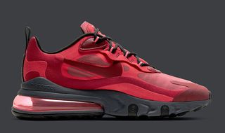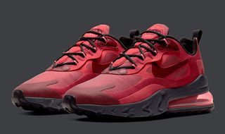 Arriving in a palate not-too-dissimilar form that of the recently-retro’d Nike LeBron 7 “Christmas”, this edition of the Nike Air max 270 React flips the famous blocking, adding the dark shades of black and grey at the base, with a murky tonal red engulfing the upper half. Overlays range from a semi-vibrant red, to both a mid and faded hue, too, with blood-reds capping the toe, Swoosh and upper eyelets. Liners, laces and outsoles arrive in jet black, and a dark grey midsole and red-tinted Air Unit complete the design.
