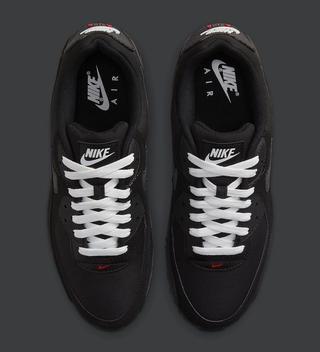 Constructed with miserable weather in mind, this ripstop-riddled Air Max 90 turns down the contrast on its previous pairs, with each panel arriving in tonal blacks. The toe-to-midfoot overlays opt for a new nubuck finish, while the mudguard continues the pack’s use of a hardened textured finish. Breaking free from a traditional triple black aesthetic, the pair comes poped with bright white laces, tongue branding, and heel Nike logos, while pops of Sport Red round out the design at the vamp’s mini Swoosh, lateral branding, and rear AIR lettering.