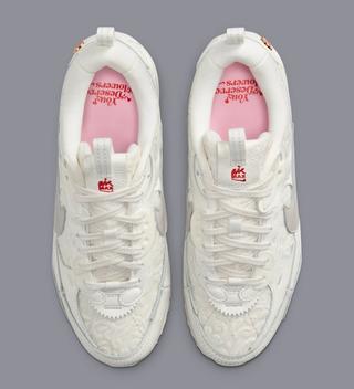The Air Max 90 Futura "You Deserve Flowers" edition embodies the spirit of love and appreciation with its intricate detailing and soft color palette. The shoe features a base of warm white leather overlays, creating a pristine canvas that is both elegant and timeless. Adding to the romantic allure, the upper and tongue are adorned with decorative terry cloth floral motifs, a delightful nod to the collection's overarching theme.