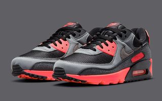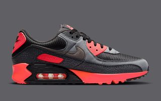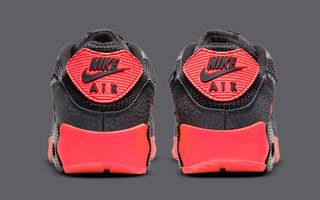 Now having sighted all three pairs, it’s evident that each release honors its respective OG colorway; the Air Max 95 and the OG Neon, the Air Max Plus and its OG Hyper Blue, and this Air Max 90 and the Infrared. For the latter two, the originals both boast a bright, light build, while these take on a more ominous approach, removing whites altogether and swapping them for blacks and greys, as well as migrating some placements — most notably the neon red rendered midsoles and Air supports. Theme-consistent safari prints ride the thick-cut mudguards, while the pack’s titular tags rest just below the ankle.