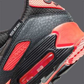 Before Nike officially included “Kiss My Airs” into their Air Max Day 2017 campaign, it had been a long-running pun/saying amongst sneakerheads throughout the world, hitting countless bootleg t-shirts, apparel, and even doormats. It was also refreshing to see Nike put a little bit more tongue-in-cheek into their marketing efforts, which have been fairly dry since the days of the OG Presto. Now, just four years later, the brand looks to revisit the expression with a special-edition collection featuring the slogan — again likely to form part of the annual celebration of Air. After surfacing on the Air Max 95 last month, the next has appeared — this Nike Air Max 90 “Kiss My Airs” — alongsidethe just-previewed Air Max Plus of the same name.