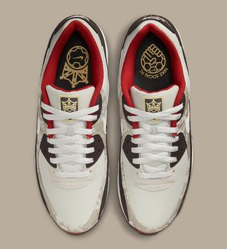 Arriving in line with the pack’s Air Max 95, this release looks to beige, brown, and red for its palette, with camo-printed canvas again returning; this time on the pair’s toe/midfoot overlays. Canvas uppers continue the light beige tones, though solid, before bold chocolate browns are worked in at the suede mudguards and rear overlays and the rubberized eyestays. Rich red is rendered into the liners, lateral brand panels, and outsole toe, with whites working their way into the laces, Swooshes, and midsoles. The pair’s specially-crafted “Social FC” motifs at the tongue and insole complete the design.
