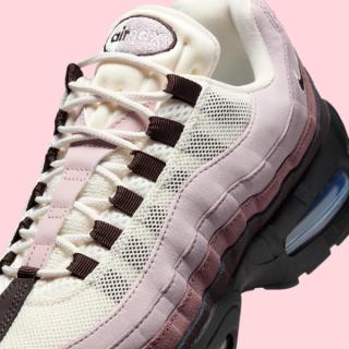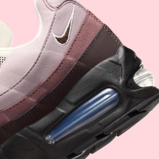 The “Velvet Brown” colorway builds on a familiar Air Max 95 formula, using layered gradients to add depth and contrast to the upper. Black anchors the base, while rich Velvet Brown tones wrap the lower panels and mudguard. Above that, softer hues of Light Violet Ore and Tattoo work through the signature ribbed side panels, giving the shoe its trademark muscle-inspired look without straying too far from neutral territory.