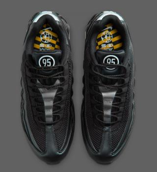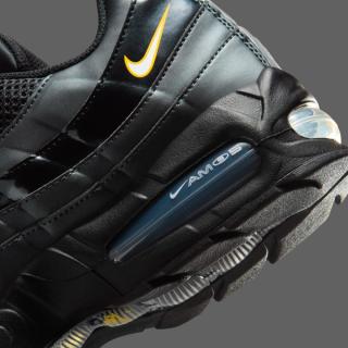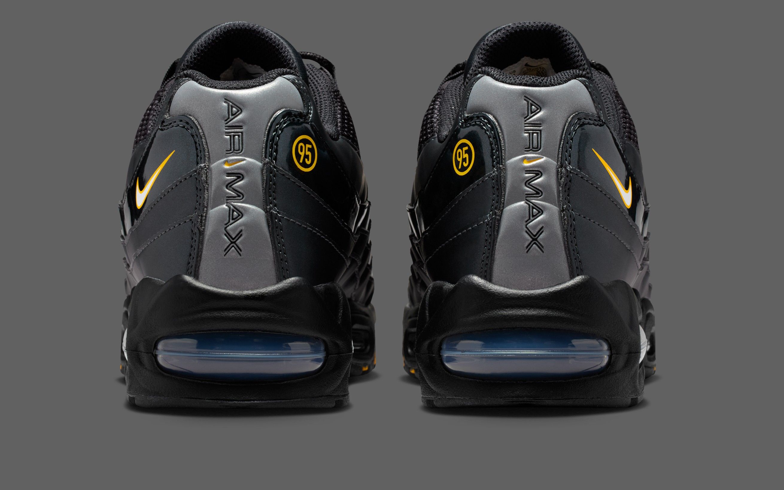 A first-look at the unreleased project was uploaded to social media in early September, teasing an eventual launch of the commemorative Air Max. Most of the silhouette is overtaken by different shades of black or silver, allowing for reflective panels and branding elements to deliver contrast. Accents throughout Sergio Lozano's design enjoy yellow flair or black touches (depending on the style), while a T90-reminiscent circled 95 emblems appear on the top-of-the-tongue and medial heel. The pair-specific logo plays with the Air Max 95 and Total 90 names while harkening back to a golden era of "the beautiful game."
