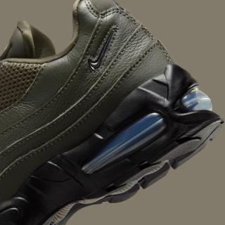 This new edition leans into understated, utilitarian tones. The Nike Air Max 95 "Cargo Khaki" arrives in layered shades of olive and deep green, pairing breathable mesh panels with textured leather overlays along the model’s signature wave-shaped sidewalls. Darker khaki hues wrap the upper while tonal laces and lining keep the palette consistent throughout.