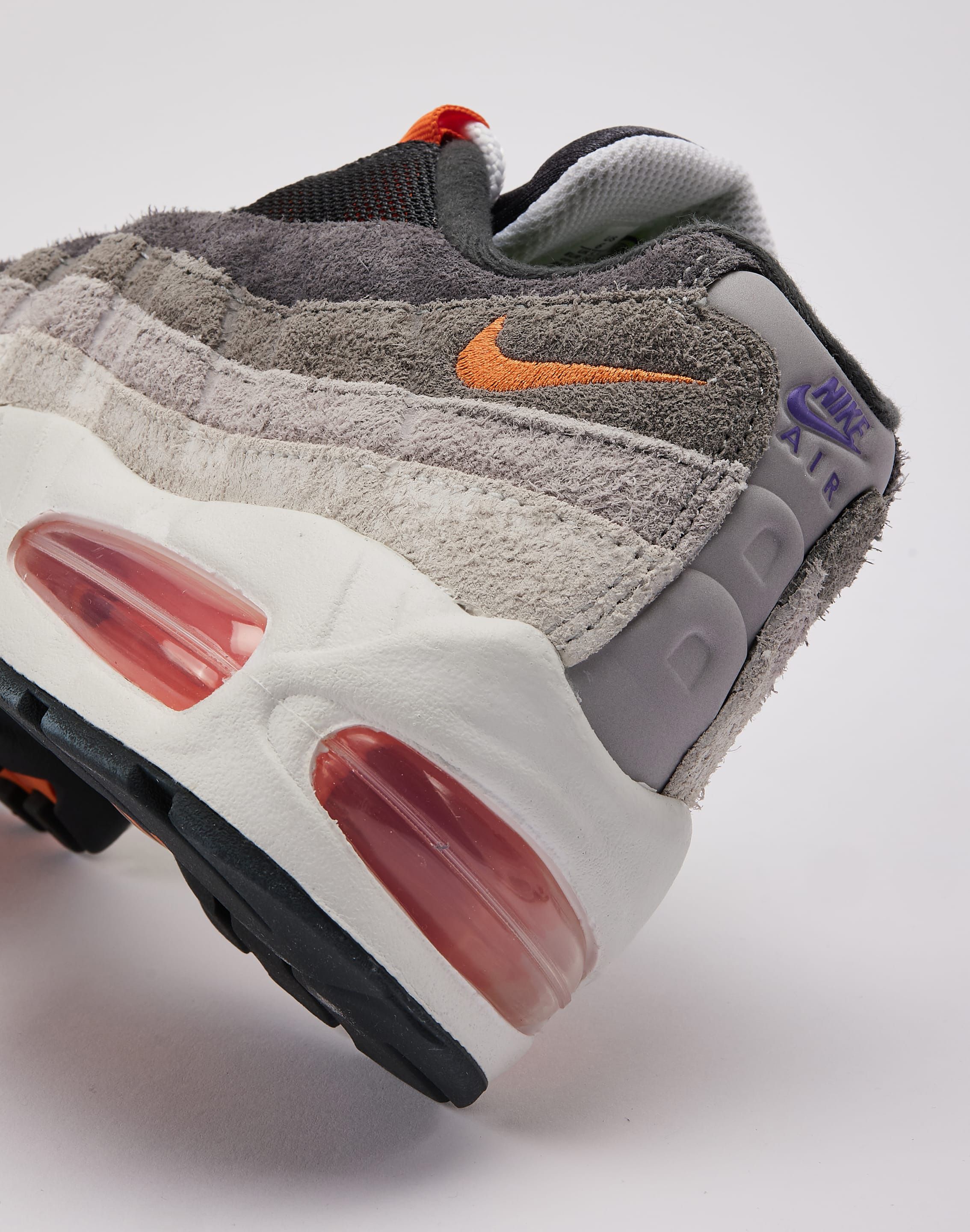 First introduced as a “What The?”-style execution in 2015, the “Greedy” theme pulls together elements from several of the Air Max 95’s most recognizable colorways. This latest version continues that approach, combining references to pairs such as “Neon,” “Hyper Turquoise,” “Comet,” “Grape,” and “Bright Mandarin” within a single design.