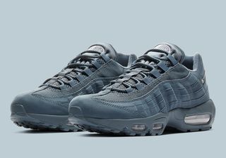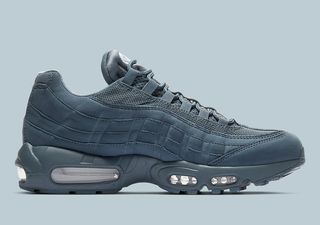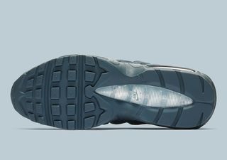 The tonal, steely finish enhances the 95’s layered design through subtle use of micro-suede and mesh, each casting off infinite shadows through its use of texture. The upper is almost entirely tonal, the only exceptions lay with the two-toned grey tongue branding and jewel Swoosh, with the mid and outsole calling upon the same Armoury Blue hues as the upper. Grey makes one final appearance in the visible Air Unit, with a simple strike of white branding on the blue insoles completing the design.