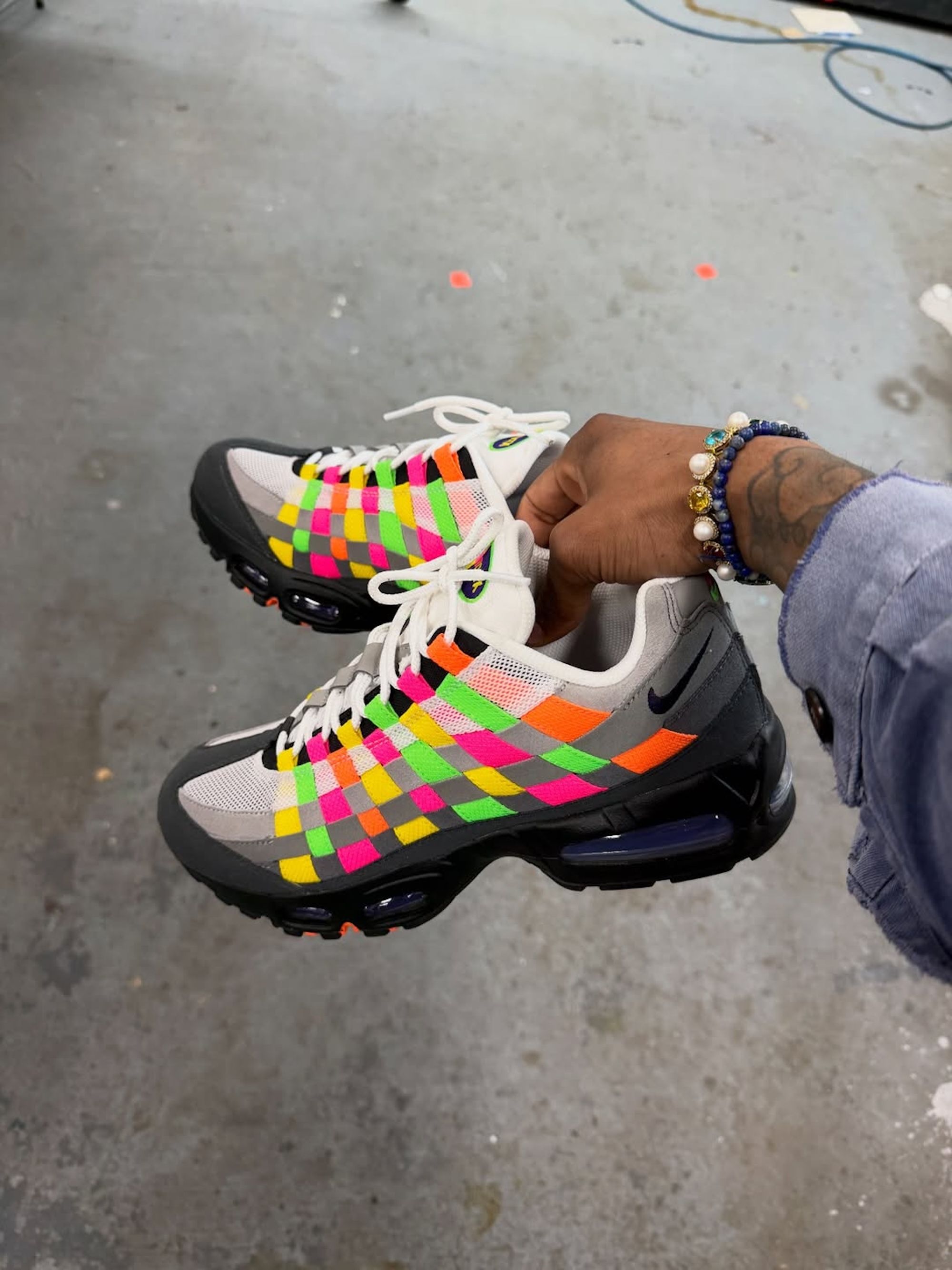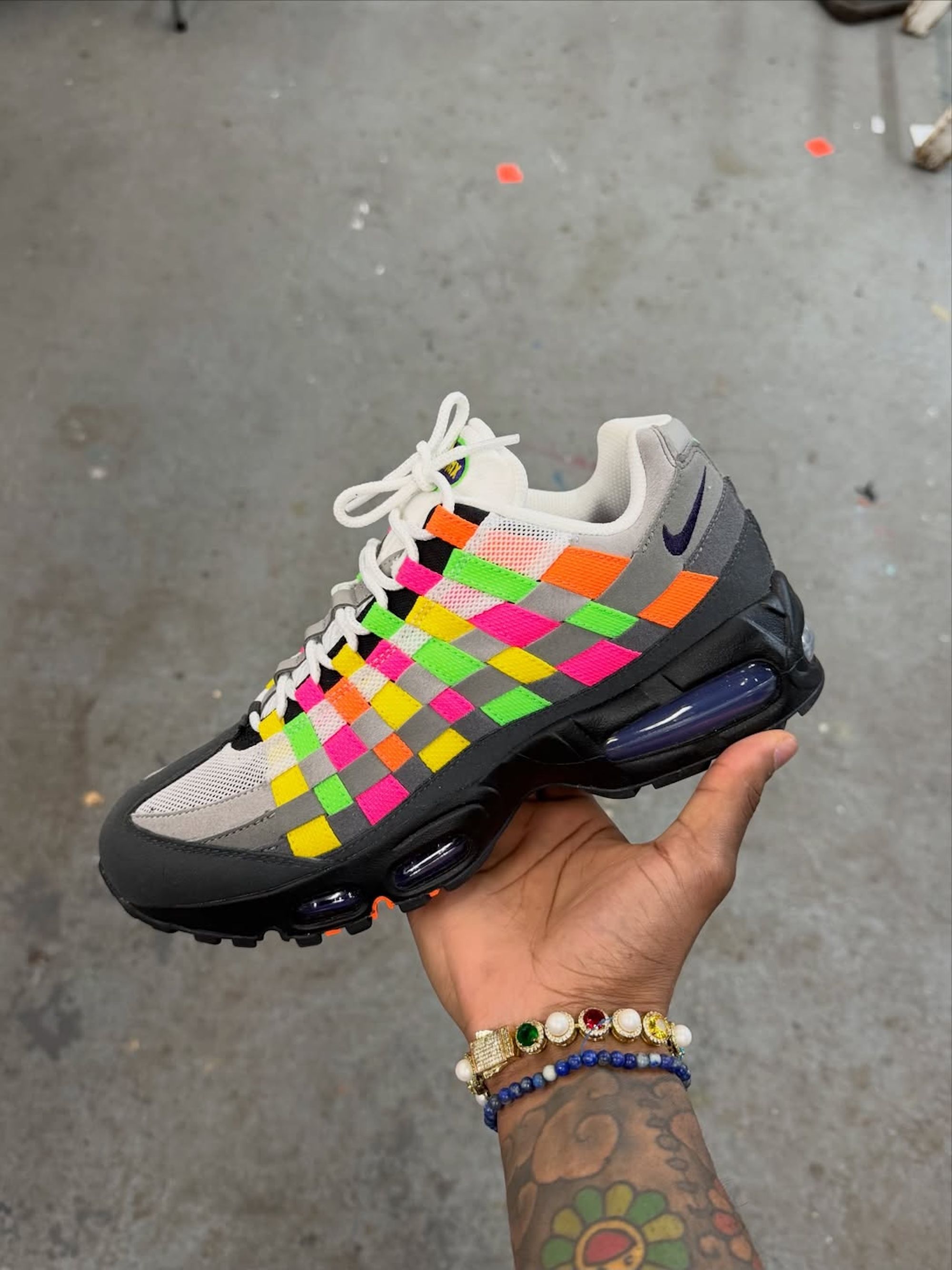 Enjoy detailed shots of the colorful Air Max 95 Woven ahead—courtesy of Rafael Valverde of Taller De Rafa. Pairs are scheduled to launch through Nike.com during summer.