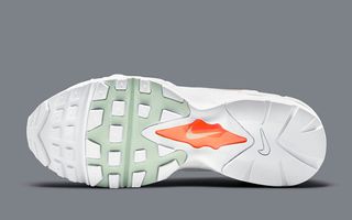 Arriving anchored in simple white mesh and tonal leather, the pair’s bright appearance is heightened by its all-white sole unit, liner, and laces additions. Streaking tongue detail in sherbert orange matches the accent line surrounding the midfoot Swoosh of Seafoam green — the pair’s champion. More hits of the barely-there hue hit the tongue liner, Air supports and underfoot tread, and the pair is capped off by 3M accents streaking back from the toe to the heel.