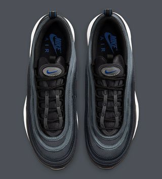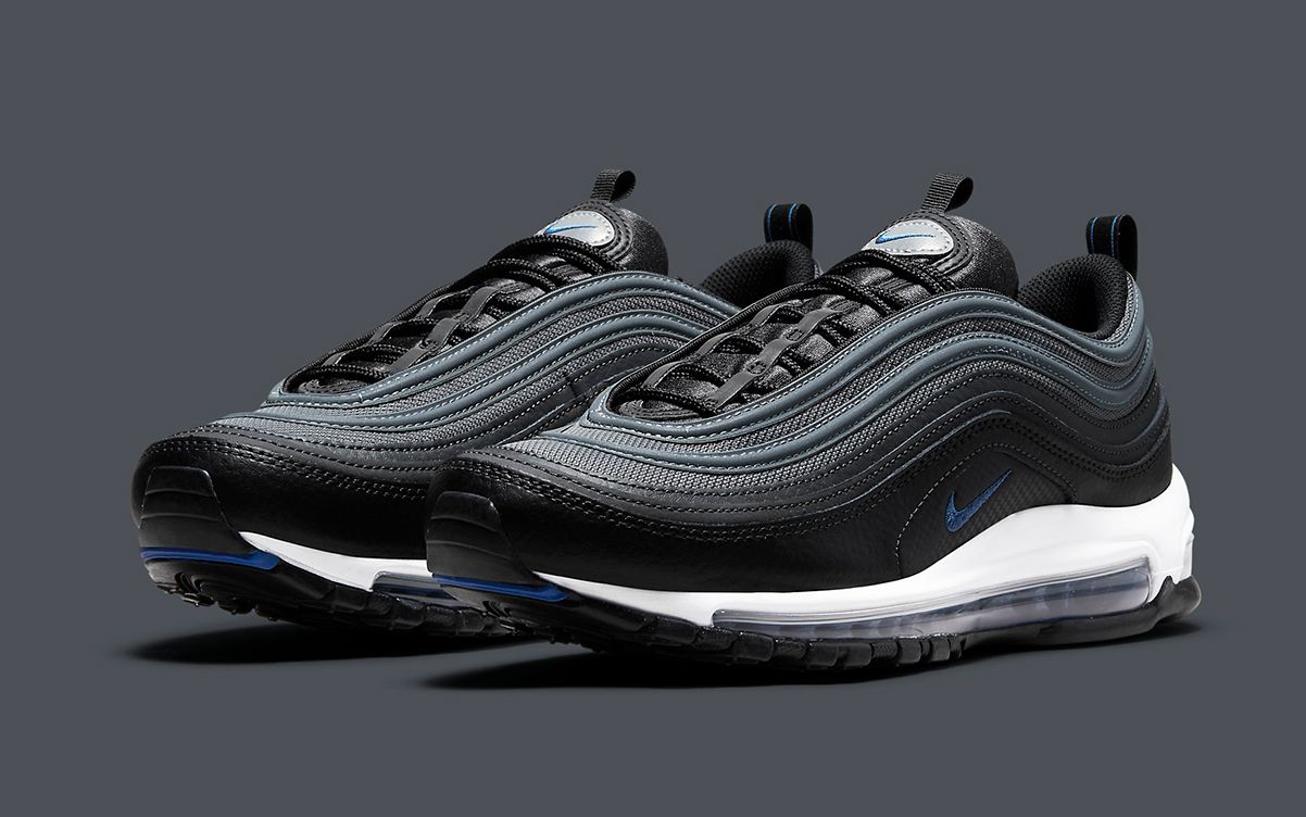 After just having dropped some Summer-friendly colorways of White Gum and one contrast-stitched with Pine Green, the Air Max 97is doing a full 180 and reverting back to black for its next release. This kids-exclusive drop undoubtedly has Fall and Winter in mind, with wet weather-warding leather overlays, seasonal hues, and a 3M reflective focus all featuring. The deep, dark theme is carried not the pair’s silver mesh uppers, its blue-tinted overlays and heavy lower-half focus on black before some timely pops of Racer Blue at the Swoosh and Air supports provide the pair with some color. Tongue, upper overlays, and mid panels feature a reflective finish — the latter in a checkerboard finish akin to this matching Air Max 90 — and the pair is completed by a blacked-out sole unit.