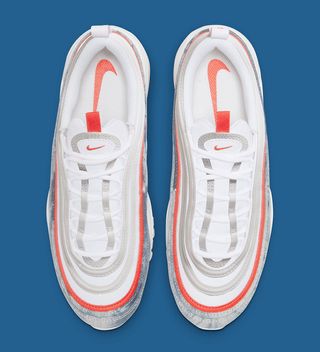 Though its Air Max 90 counterpart ditched the pack’s stone-washed finish, the collection’s Air Max 97 see’s its return, with the twill working its way across the lower level overlays. Just above, you’ll find a quick red strike, with Air supports and tongue, pulls to its inferior and superior. The rest of the sneaker arrives in pure white, from the mesh uppers and its 3M reflective panels to the midsole and outsoles underfoot.