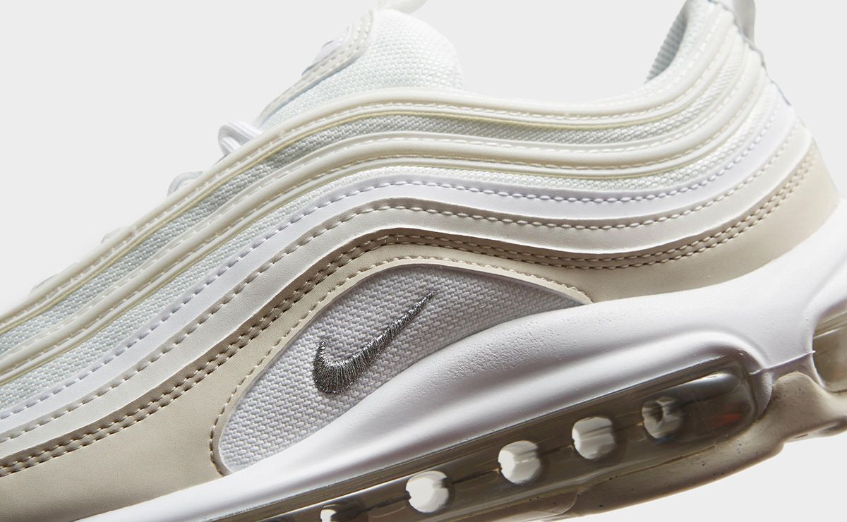 The Air Max 97 will see out the summer season with another bright white release, with this new ladies-exclusive effort in white, beige, and metallic silver set to hit shelves soon.