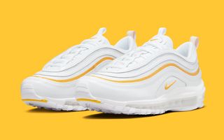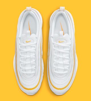 After a brief slow-down in production over the winter period, the Air Max 97 is picking up steam as it enters its 25th summer season. One of those expected to join the party is this fit-for-summer arrangement in pure white and yellow.