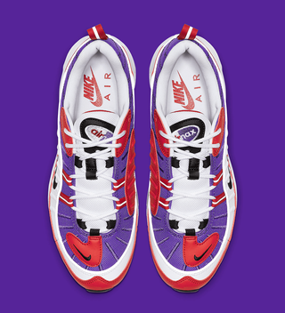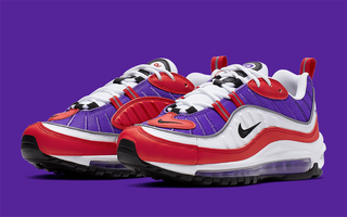 Update 07.21.19 Pairs of the “Raptors” Air Max 98 WMNS have landed and are available right now from Euro retailers Noir Fonce. A Stateside release is still TBA — if at all — so if you love ’em, scoop ’em up now!OG Post 06.12.19 // With the Raptors just one game away from clinching the franchise’s first-ever Larry O’Brien Trophy, the Surfacing of these 6-themed Air Max 98s couldn’t be more timely. Reminiscent of the mid-90s uniforms, the pair sports franchise-friendly mix of retro Raptors colors, the pair layers stark white and red leather overlays across its vibrant purple mesh upper, along with tonal purple embroidery and bold black accents throughout. White tongues, liners and midsoles add to the layering effect, while purple Air Units and solid black rubber outsoles complete the design.