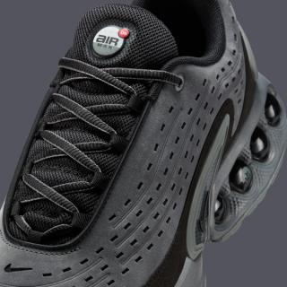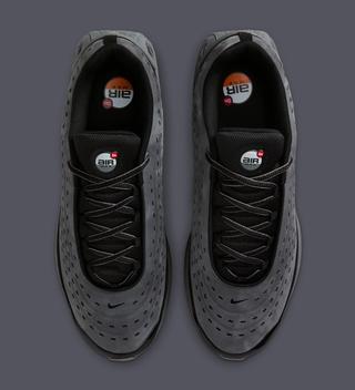 The upcoming “Charcoal” colorway leans into that everyday appeal. Dressed in a muted mix of dark grey and black, the pair keeps things understated while letting the model’s distinctive tooling do the heavy lifting. The upper features a perforated, wave-patterned construction that adds depth without introducing contrast-heavy panels. Black mesh through the tongue and collar tightens the look, reinforcing the DN’s streamlined, modern profile.