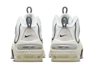 Joining the recently-revealed Adjust Force, More Uptempo, and Air Force 1 Low of being cut from the same cloth, the pack’s Air Penny 2 also shares the pack’s defining traits; That is, a pure white leather upper, bold black and chrome accents, and EMB-branded insoles. Here, though, Nike has introduced some warm hues into the scheme, with bone guard overlays, sail midsole rises, and milky-translucent rubber outsoles to round out the design.