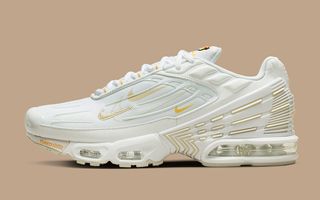 Clad mostly in a summery bright white, the pair looks to very few accentuations for the character. Most obvious is the pair’s multiple Swooshes in gold and yellow, and sail heel detailing and outsole coloration. The medial side shines with golden-yellow Checks, with the hue adding a few more warm hits along the eyestays and forefoot/heel TUNED AIR branding, with staple TN fixtures at the tongue, insole, and outsole rounding out the design.