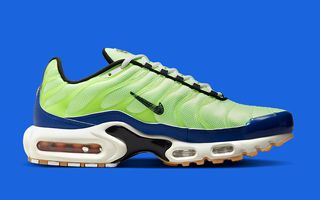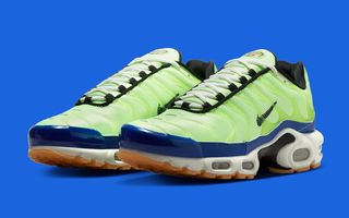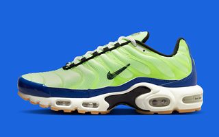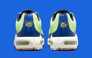 Borrowing elements seen on the first-up Nike Air Max Plus “M. Frank Rudy,” the pair utilizes sketchy Swoosh graphics, translucent vein overlays, “EST.” insignia on the lateral Air bag wall, and blueprint insoles that showcase the proprietary tech. Here, though, the pair differentiates itself through a bevy of color, with striking neon green uppers and rich royal blue guards. It’s peppered with jet black accents, most noticeably on the Swoosh and midfoot shank, before a white and gum sole unit completes the design. The pair is then fitted with an air pressure gauge hang tag as a reference to the celebrated technology.