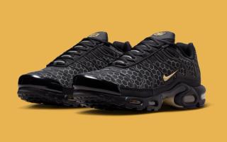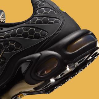 The sneaker maintains its iconic build, but sees its mesh base overtaken by a hexagon pattern done in a light yellow hue. Profile swooshes, whale tail-shaped shanks underfoot, and Air Max cushioning indulge in a darker shade of yellow. Emblems on the top-of-the-tongue see a golden bee graphic that reveals the inspiration behind the Air Max Plus; the same image is embroidered behind the tongues. The sneaker evokes images of the "Honey Black" Corteiz Air Max 95 collaboration from April, taking the project's nickname quite literally.