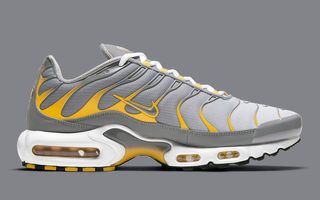 Largely known for its audacious colorways, crazy prints, and aggressive aesthetic, the Nike Air Max Plus has never been afraid to show its teeth. This next pair does just that through the use of a cautionary yellow, but still remains calm across a cooling grey and white base. The silhouette’s signature gradient mesh upper arrives with a barely-there finish, seen moving from mid- to light-grey towards the toe. The caging overlays, too, arrive with a gradient finish, with the aforementioned yellow migrating into grey before reaching gold again at the lacestays. Striking whites provide the pair with significant pop at the laces and midsoles, and the pair is complete with yellow-filled Air supports, an airbrushed midfoot shank, and a simple black rubber outsole.