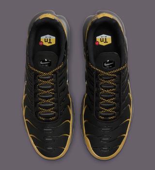 Adding another layer of intrigue, the vein cage overlays incorporate both black and harvest gold, creating a striking interplay of contrasting colors. A uniquely Air Max Plus feature, these overlays infuse the design with a sense of dynamism and visual tension.