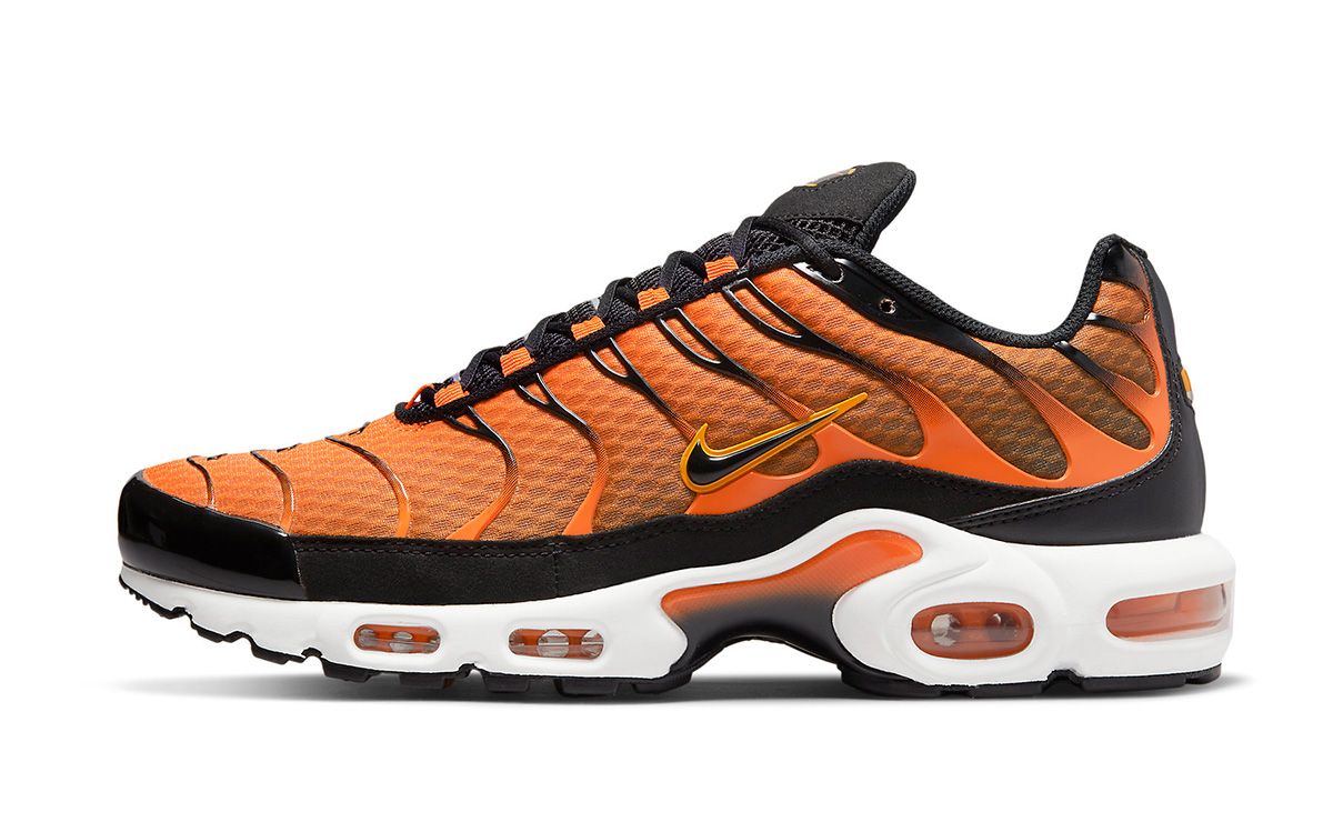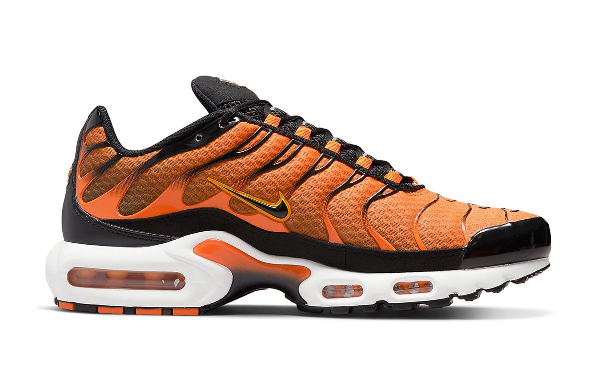 The Nike Air Max Plus has a penchant for churning out colorways as if the silhouette was going out of style (It’s defiantly not – just ask my fellow Australians!) Heating up that seemingly endless run of new schemes is this fiery orange and black number that brings in new mesh finishes and red-hot gradients that subtly honor the OG Sunset scheme.