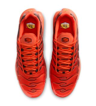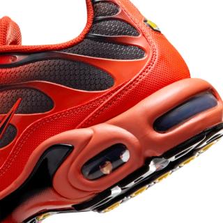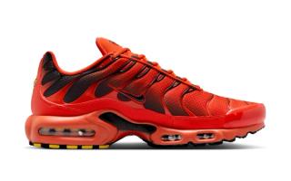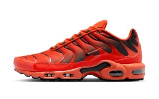 "Picante Red" animates the bulk of the sneaker's build, with a "Black" gradient finish appearing from mid-foot to heel, taking over TPU overlays and mesh bases in the process. The whale tail-shaped shank underfoot follows suit, while the Tuned Air and Air Max units also favor a pitch-dark makeup that allows for the orange-like red throughout the sneaker to revel in the spotlight.