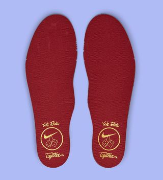 Mesh uppers work from red to purple gradient and back again, with staple surrounds of black at the caging, toe caps, and tongues all present. Liners arrive in the aforementioned velour — also in black — with tongue tips, guards, and heel overlays all opting for a high-gloss finish. Sole units arrive mostly in black and white, with midfoot shanks sporting a black and red ombre, and Air supports stuntin’ in gold. Metallic gold branding features heavily throughout, with midfoot mini Swooshes, tongue tags, “Sister” lace bling, and fluffy dice-designed insoles all featuring the finish.