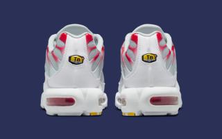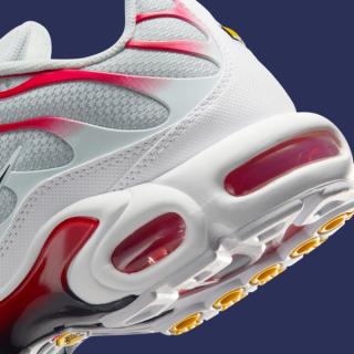Underfoot, the white midsole keeps things crisp, while the midfoot shank blends red and navy for a subtle layered effect. Classic yellow TN branding remains intact, a reminder that this is still very much a Tuned Air first — theme second.