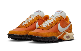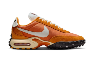 While the upper pays homage to classic Nike colorblocking, the lower half embraces the new. The sculpted foam midsole hosts a visible Air unit at the heel, while the exaggerated waffle tread outsole — done up in black rubber — nods to Bill Bowerman’s historic innovations.