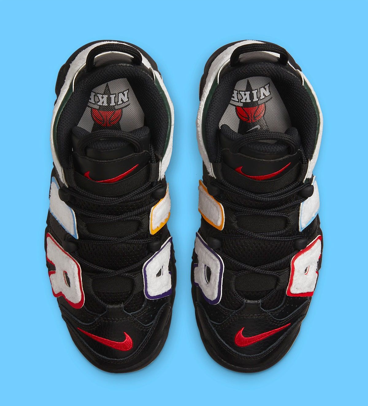 Anchored in the silhouette’s staple black base, the material choice is a suitable leather for Fall weather. It’s then met by OG-inspired white AIR lettering, though here it sees a furry fleece finish. Underneath each lettered panel is a unique splash of color, with red, blue, golden-yellow, olive green, and purple all present. It’s the former, though, that extends beyond those bounds by dressing the pair’s twelve Swooshes — and its Air supports, too! The pair is then completed by a special Nike Basketball motif on the insoles.