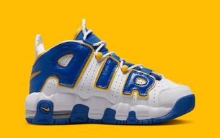 Though pairs of the Nike Air More Uptempo “Golden State” are already available at select retailers across Asia, we’re still waiting for a Stateside rollout. Until then, grab an official look at the pair here below in grade school sizing, and as always, keep your eyes glued to our official Twitter account for further updates on its release.