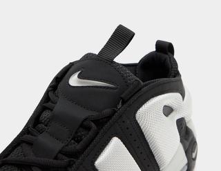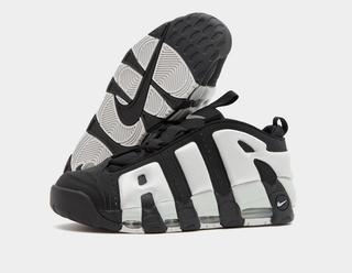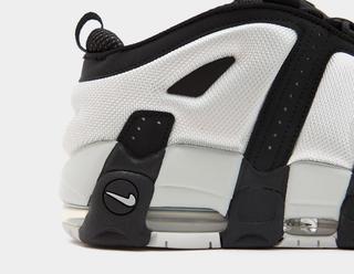 The Nike Air More Uptempo Low "Triple Black" boasts a monochromatic black upper that emphasizes a sleek and streamlined look. This minimalist approach highlights the silhouette's iconic features, including the oversized "AIR" branding which is subtly embossed on the sides. A touch of sophistication is added with a jewel Swoosh on the heel and tongue, providing a subtle sparkle that enhances the shoe’s refined aesthetic without detracting from its overall simplicity.