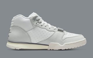 An original colorway on the Nike Air Trainer 1 Low from 1987, this year’s release sees it return to mid-cut form, with identical color blocking and material execution found throughout. You’ll note true-to-OG perforated white leathers, soft suede toe overlays, and varying shades of grey in all the right placements — even the sole unit features a soft sail tint for that retro appeal. There are a few minor tweaks, including white Nike lettering on the outsole in place of the OG’s green, and an omission of perforations on the tongue.