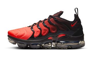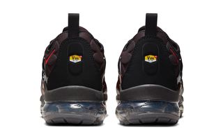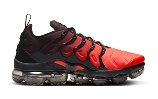 This new Nike Air VaporMax Plus “Darth Maul” has earned its moniker for obvious reasons, with its striking black and red arrangement ostensibly mirroring the villain’s appearance thanks to its veiny cage overlays. Underneath, a red-to-black gradient neoprene resides to give the pair substantial contrast, while blacks build out the majority of what remains. There are, however, a few more instances of crimson, with ankle Swooshes and gradient midfoot shanks providing some final pops of color to complete the design.