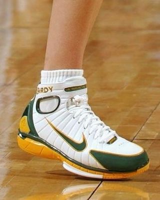 Dressed in a mix of White, Deep Forest, and Canyon Gold, the colorway captures the Storm’s timeless team palette. The crisp blend of smooth leather and metallic detailing pays tribute to Bird’s dominance on the hardwood — and her legacy immortalized in bronze outside Seattle’s Climate Pledge Arena, where her statue even includes the signature “BIRDY” etching across the ankle strap.
