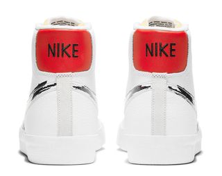 Like the others from the series, the pair arrives in much the same aesthetic, with graphic Swooshes styled akin to an artist’s stroke the championing feature. It also comes complete with consistencies such as heavily tumbled leather construction, striking red rear panels, and hard-to-see translucent TPU Swoosh overlays The Blazer still keeps it’s ’77 vintage suede overlays and exposed foam tongues, and comes complete on a classic all-white sole unit.