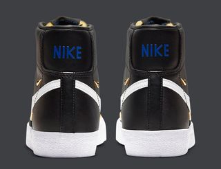 The recently-revealed Air Force 1 Low LX dressed with mini chrome Swooshes will arrive alongside some company, with a duo of Nike Blazer Mids appearing with similar premium finishes. Like the Uptown, the heritage hoops shoes come dressed in a classic base palette — here in all-white and black and white options — equipped with shiny metallic silver mini Swooshes. Until the AF1, the Blazer’s bling is adjusted around the quarter, and only features two pieces per side. It does, however, feature the same bold blue branding hits and crazy insole prints, along with a premium construction worth the extra few dimes. Both pairs come complete with tonal suede forefoot overlays, luxe leather liners, and a classic all-white sole unit to boot.