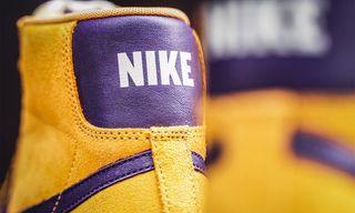 This suede-equipped effort rocks a mix of golden yellow and deep purple up top, the former forming the sneaker’s entire base, with the latter hitting the Swooshes and heel panels. Luscious suede arrives from collar to toe, with the exposed foam tongues arriving in traditional nylons. The aforementioned purple panels sport smooth leather, and the pair comes complete with the standard vintage-inspired embellishments; retro tongue badges, white sole units, and simplistic NIKE lettering at the heels.